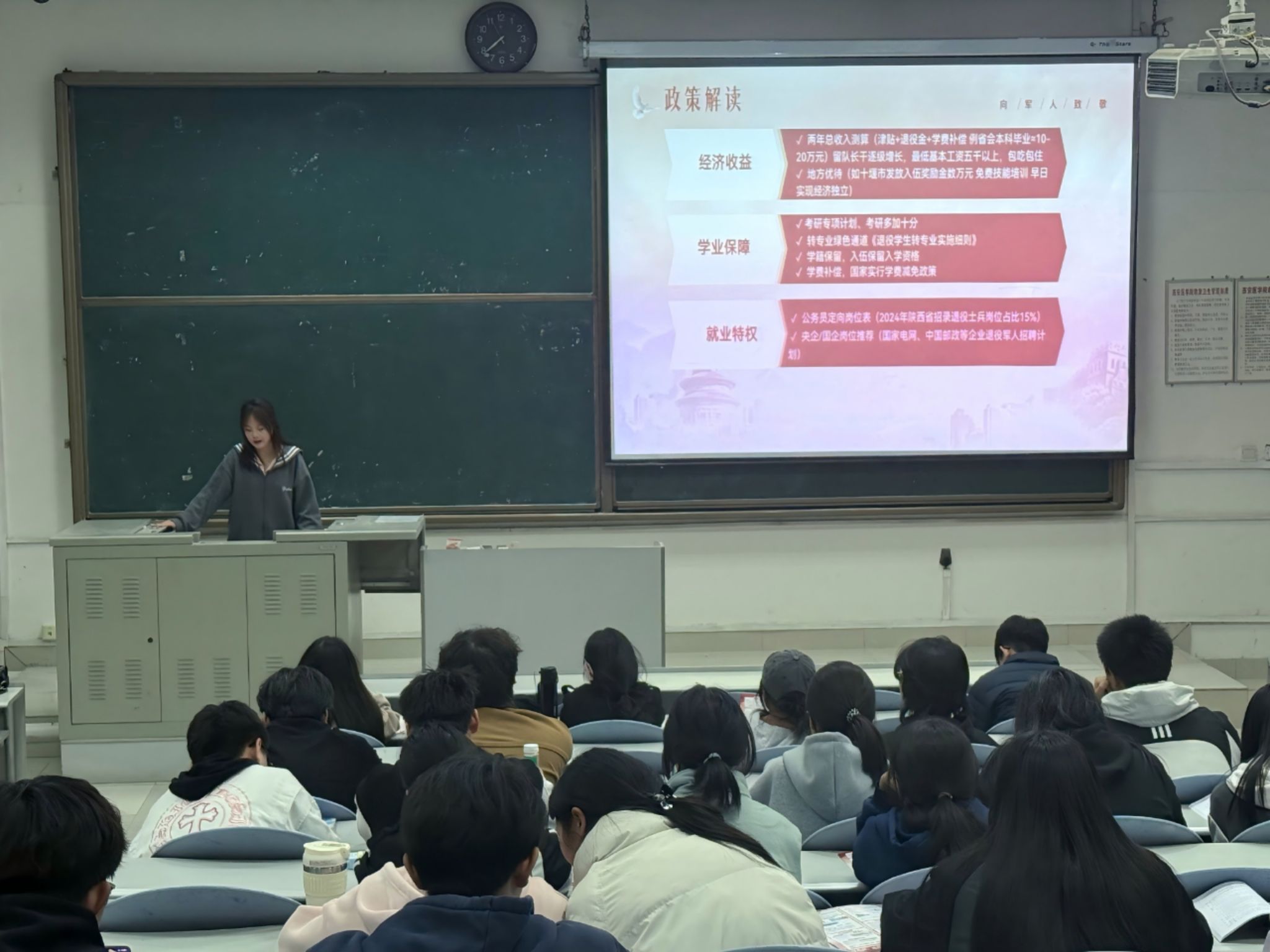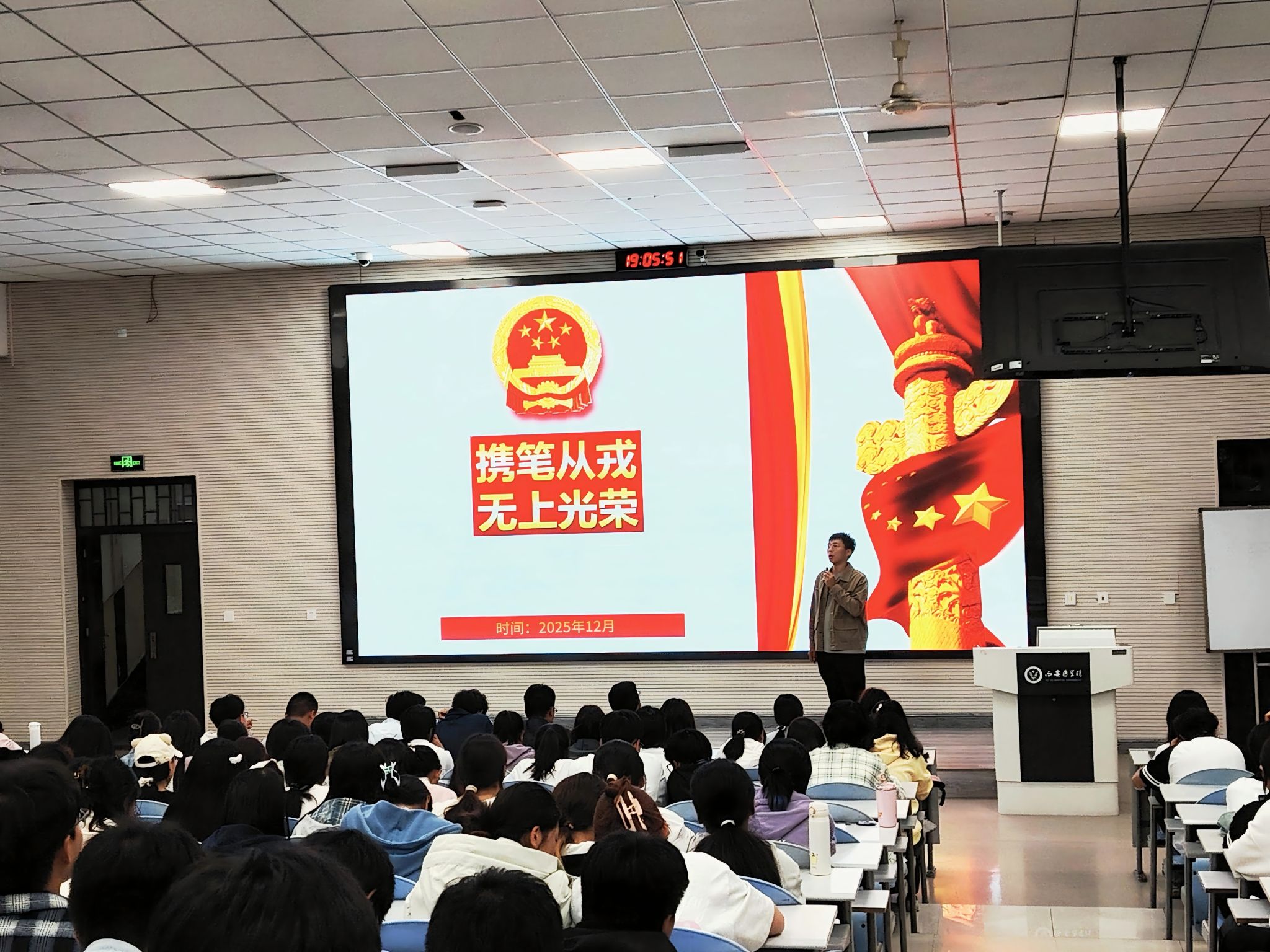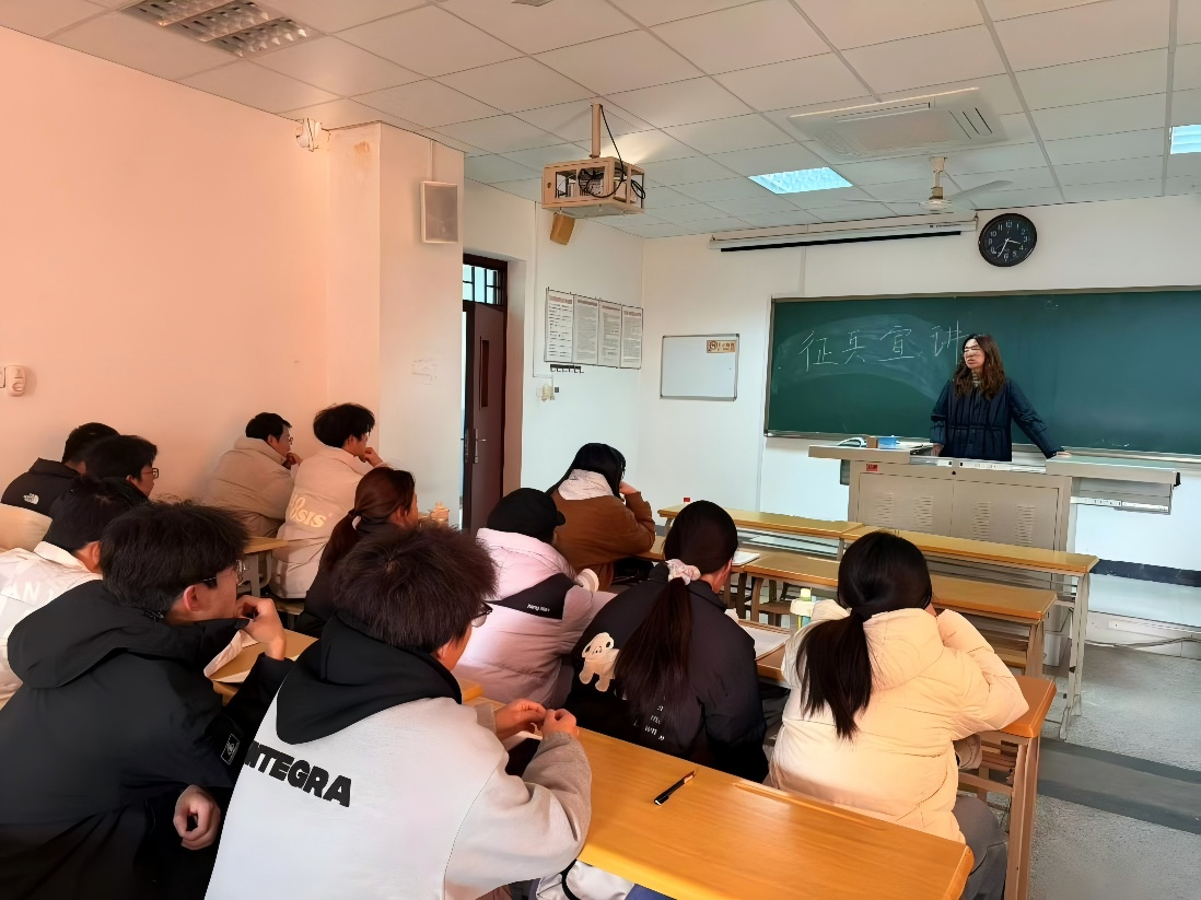 此次系列宣讲活动覆盖全校各学院,通过多维度、分层次的政策解读与亲身经历分享,切实增强了青年学子投身军营的责任感与使命感。从退役大学生士兵的动情讲述到征兵专干的细致答疑,从影像资料的直观呈现到优待政策的精准传达。下一步,学校将持续跟进征兵服务工作,做好报名指导、材料审核及后续衔接事宜,鼓励更多青年学子以青春之名赴军营之约,在国防建设中绽放青春光彩。