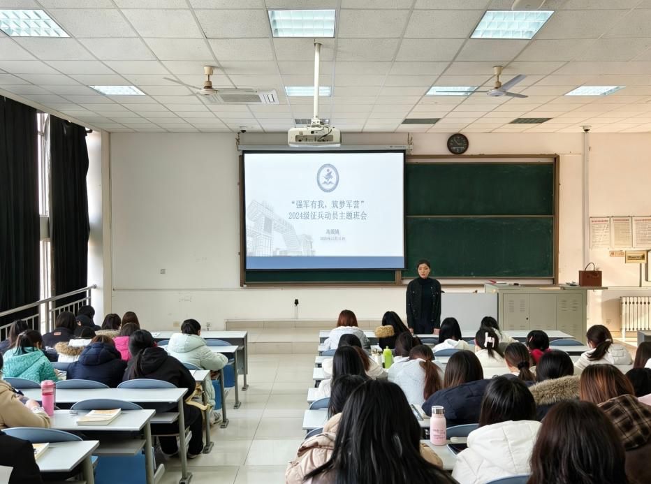 2025年12月外国语学院针对各年级特点开展分层宣讲活动。面向毕业生,重点解读征兵优待政策与发展规划,突出军营对个人成长的淬炼价值;针对中低年级学生,以“青春献国防”主题班会为核心,讲解入伍条件、流程及军营生活,有效激发低年级同学的早期向往,为长期兵员储备夯实思想基础。
