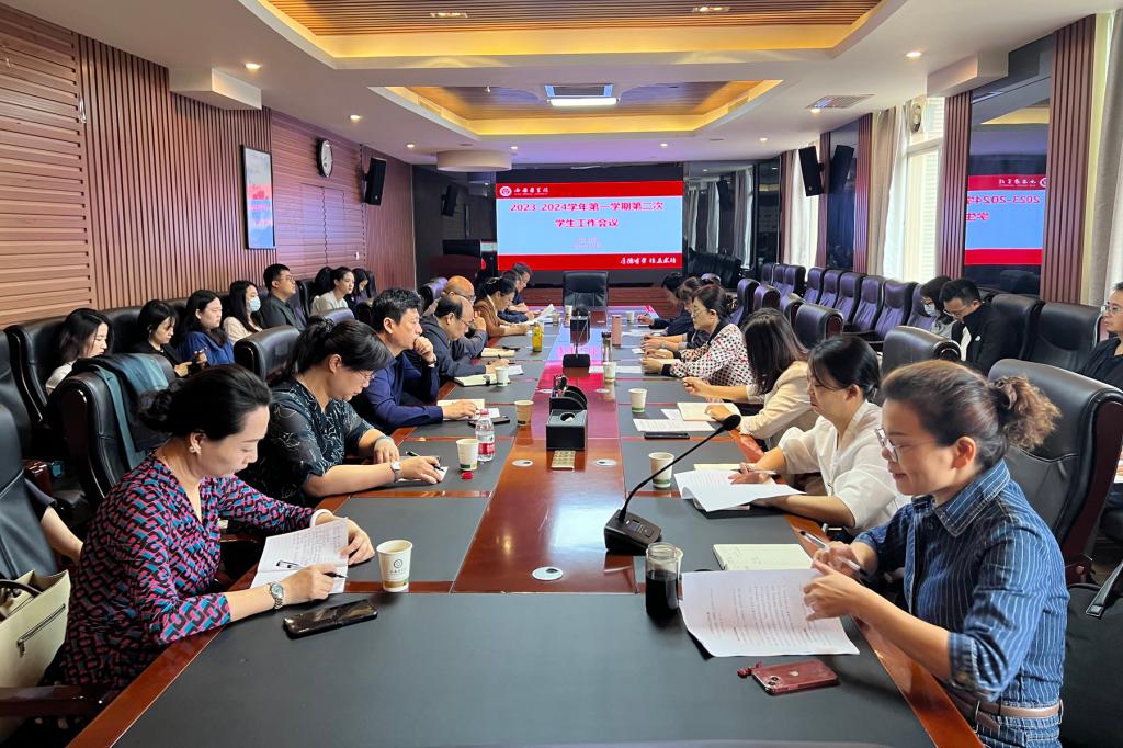 9月21日,我校2023~2024学年第一学期第二次学生工作会议在行政楼217会议室召开,校党委副书记熊冬梅出席会议并讲话。会议由学工部部长、学生处处长、武装部部长昝倩主持。