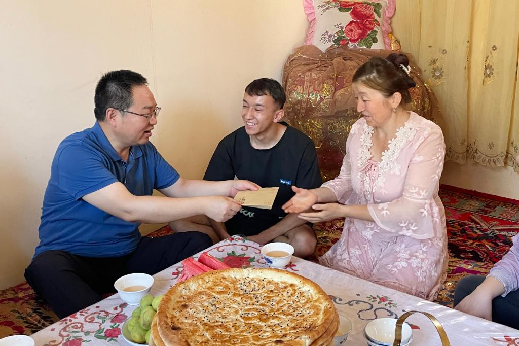 日拱一卒无有尽,功不唐捐终入海。家访最后一站来到三代学医世家的精医2103班张昊驹家,张昊驹父母对孩子期望很高,非常期待和感激家访组的到来。刘岭勉励张昊驹学会感恩父母和母校,传承好优良家风和校风,做一个热爱专业,热爱生活,热爱自然的学生。要有更高的使命感和责任感,把个人成长与社会发展、健康中国建设等紧密结合。家访之路上感动亦被感动,激励亦被激励。刘岭向同学们分享了个人成长经历,走出大山的故事,引发了学生及家访组的共鸣,受访的同学们倍感亲切和鼓舞,纷纷表示,感谢刘岭书记和老师们奔赴千里,把爱送到家,西安医学院是个有情有义的温暖大家庭,在西医求学过程中收获颇多,认识了许多优秀的同学、热心的老师,定会不负学校和家庭的期盼,为建设家乡、建设祖国奉献青春力量。本次赴疆家访活动有效促进了新疆籍少数民族学生及其家庭与学校之间的情感交流,推进家校合作协同育人。同时,也促进了不同民族之间的交流与融合,是铸牢中华民族共同体意识的生动实践。