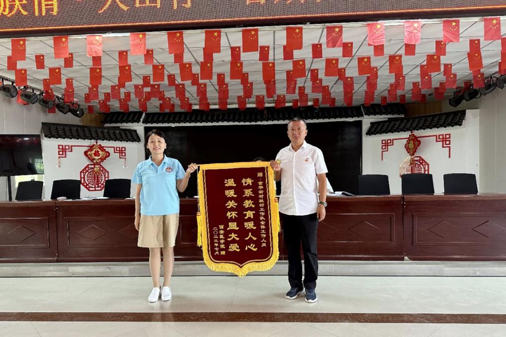 随后,安顺凤同志宣读了感谢信并向驻村工作队赠送锦旗,“心系教育暖人心,温暖关怀显大爱”金黄的大字格外醒目,现场气氛热烈温暖,掌声不断。