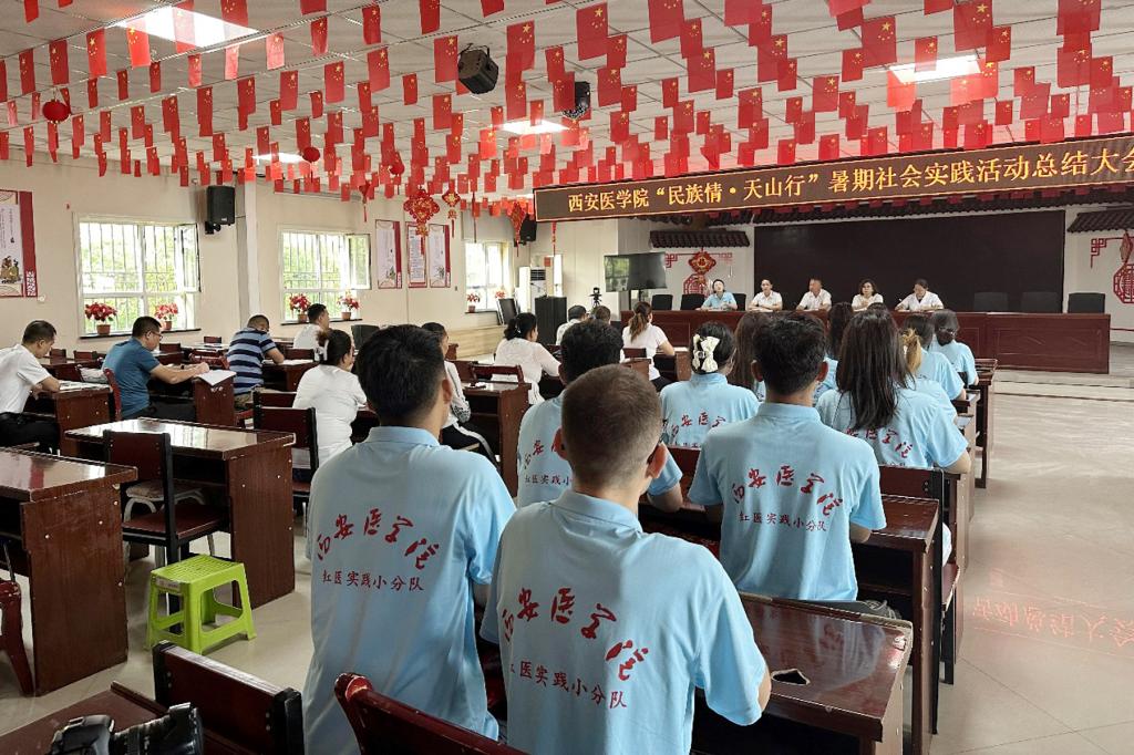 会上,我校党委学生工作部安顺凤老师首先对活动开展情况进行总结:“十天时间,实践团围绕一个主题(学习二十大永远跟党走奋进新征程);突出两项任务(服务乡村、提升自我);完成七项活动(“学习贯彻党的二十大,铸牢中华民族共同体意识”主题宣讲活动、医疗义诊服务活动、助力乡村振兴专项活动、温暖帮扶志愿服务活动、民族团结我践行活动、红领巾小课堂活动、追溯红色记忆活动);培植三种能力(医学技能操作能力、发现问题解决能力、服务基层知识能力);通过实践活动,使同学们更好地了解到阿克苏地区医疗卫生现状,并将医疗健康卫生预防知识、民族团结思想内涵、铸牢中华民族共同体意识带给各民族群众,从中受到教育、增长才干、做出贡献”。