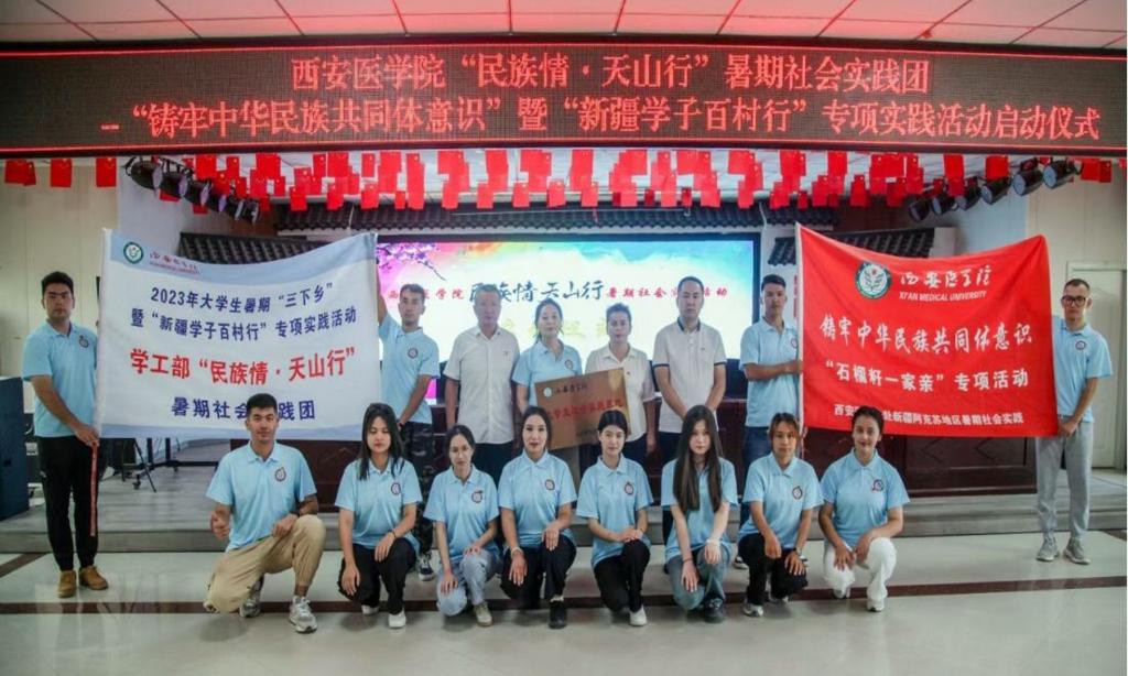 为全面贯彻落实习近平总书记关于民族工作的重要论述,铸牢中华民族共同体意识,帮助和引导我校青年学子回到家乡,通过实地调研和观察,深入了解民族团结现状,当好民族团结的宣传员、示范者和践行者。2023年7月23日,“民族情·天山行”暑期社会实践团,走进新疆阿克苏地区温宿县金华新村,开展为期10天的社会实践活动,为扎实推进民族团结学习教育宣传工作贡献西医力量。