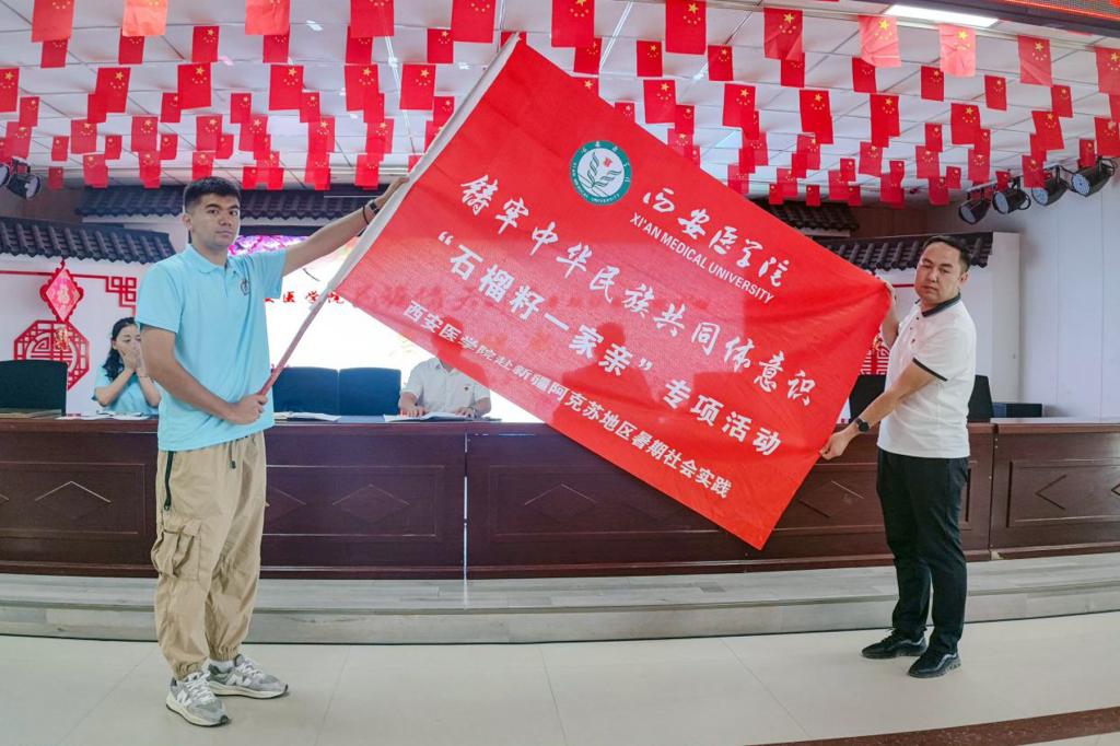 最后,温宿县团委书记胡大勇、金华新村驻村工作队第一书记孙卫东为实践队授旗,村党支部书记布海里且木·艾孜木与学工部安顺凤老师签署“西安医学院大学生社会实践基地”协议并挂牌,这标志着我校新疆第二所大学生社会实践基地的落成,今后,双方将加强交流与联系,更好的合作发展,共同提升社会实践活动丰富的内涵和意义,为新疆的发展和建设做出积极的贡献。