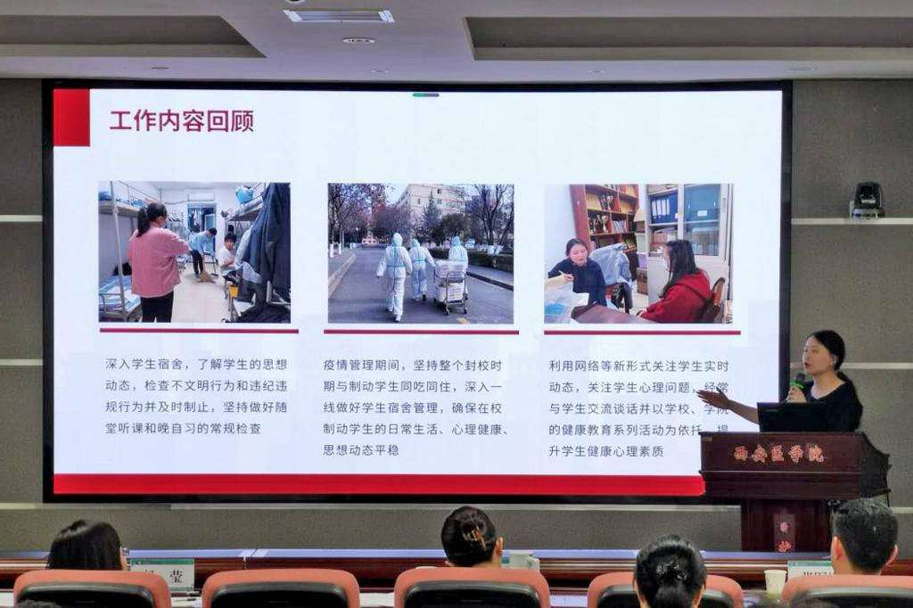 会上,16名优秀辅导员候选人按照工作开展情况、取得成效、创新做法及下一步工作举措四个方面定性定量全面展示了辅导员育人工作实效。