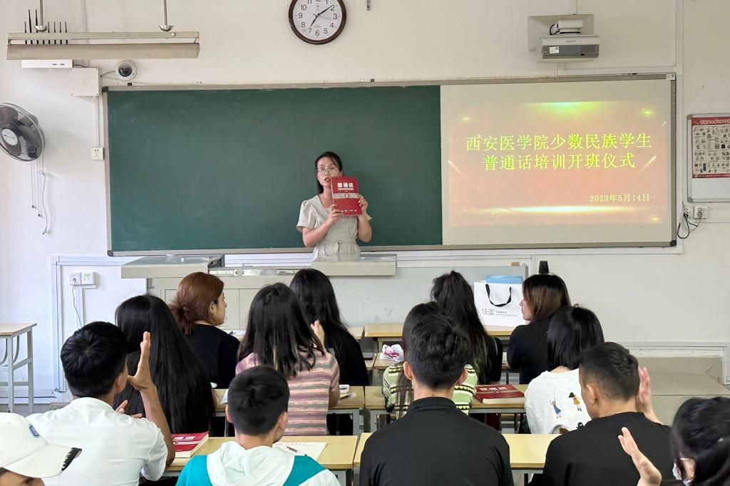 为进一步加大国家通用语言文字推广普及力度,提升我校少数民族学生国家通用语言文字水平和能力,促进各民族学生的交往交流交融,铸牢中华民族共同体意识,5月14日晚,在教学楼113教室,民族学生普通话培训班正式启动。