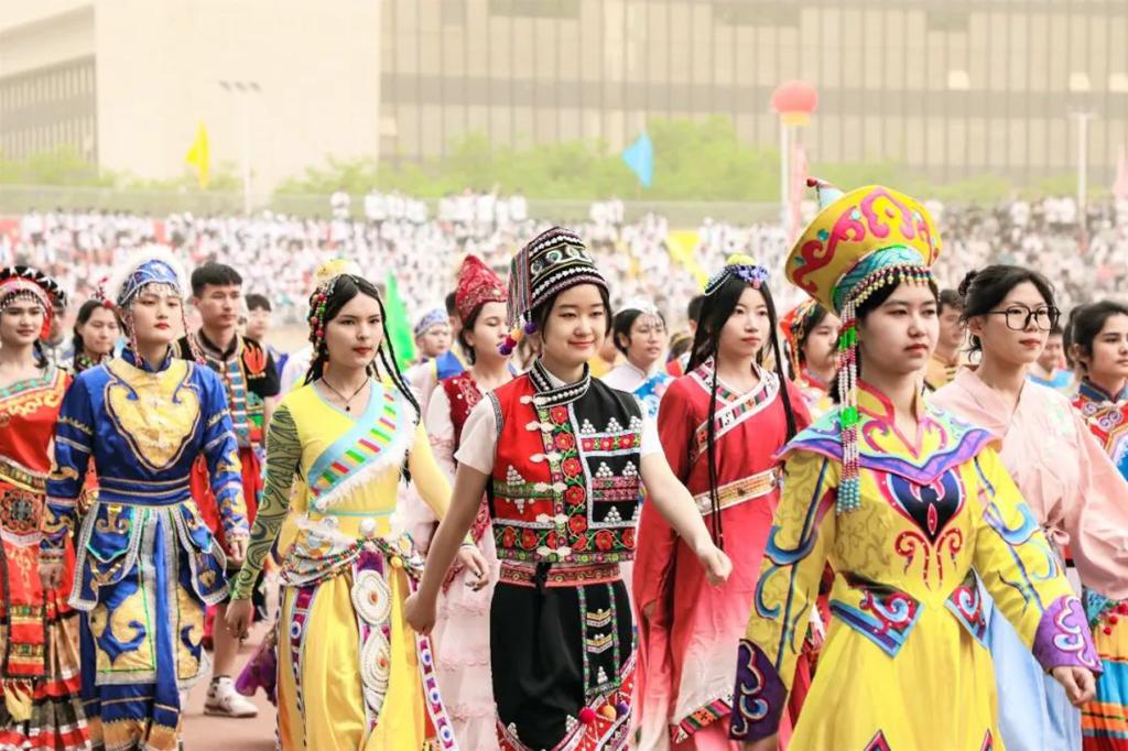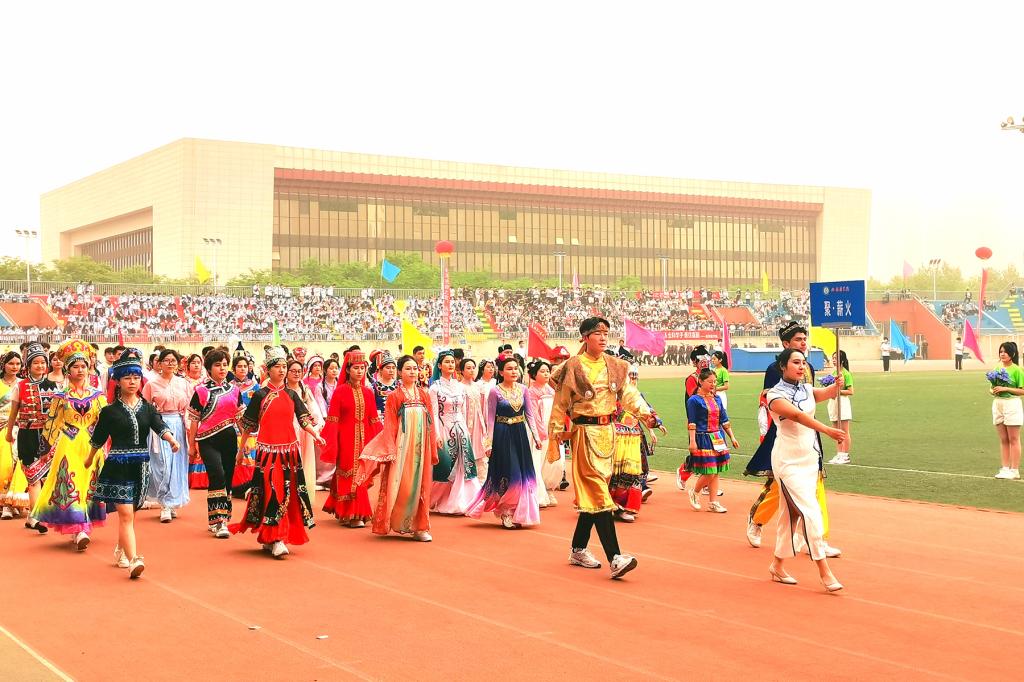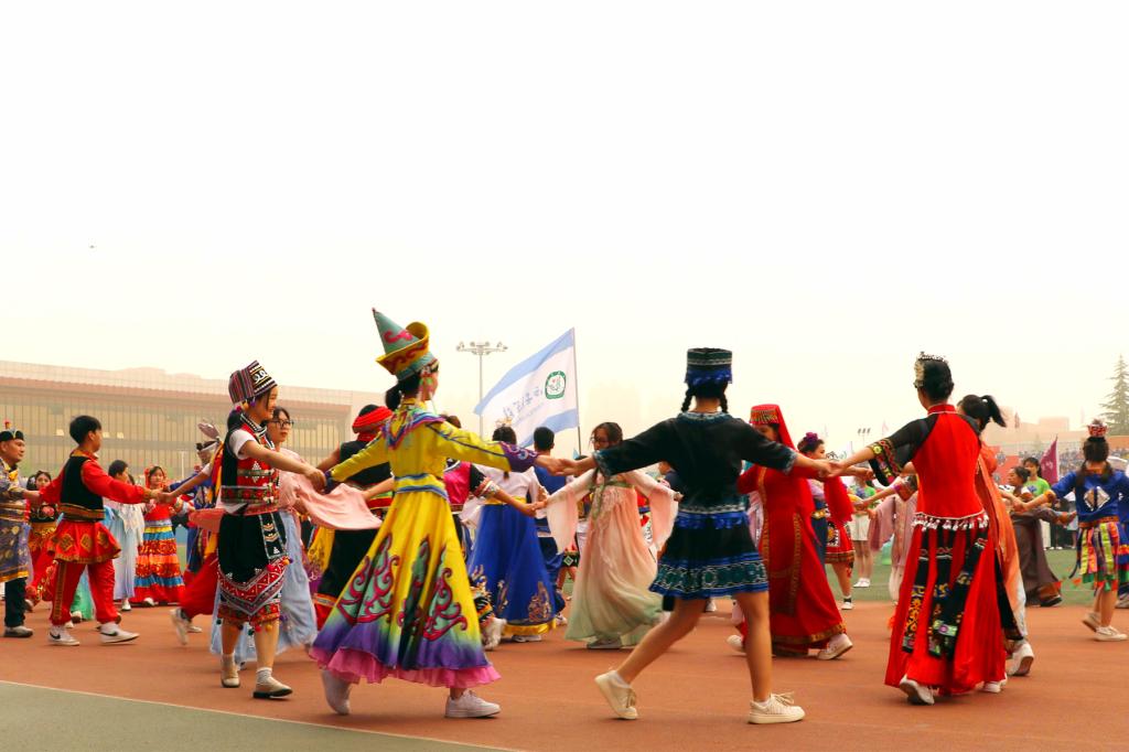4月20日上午,我校第十六届运动会在体育场成功举办。一支由维吾尔族、哈萨克族、藏族、回族、仡佬族等31个民族80名学生代表组成的民族学生方队,身着华美亮丽的民族服饰,洋溢着青春的活力,在《相亲相爱》音乐声的伴随下,迈着整齐坚定的步伐,载歌载舞通过了主席台,为运动会开幕式增添了浓浓的民族元素和节日喜庆。