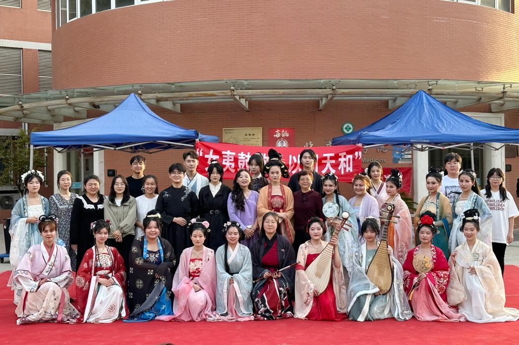 为进一步弘扬中华优秀传统文化,厚植家国情怀,增强文化自信,4月16日下午,在D楼广场,“女夷鼓歌 以司天和”花朝节活动成功举行。长乐汉韵社全体人员、少数民族学生代表、社团指导老师、学工部及学院民族辅导员专干、新疆派驻教师共200余人参加了活动。