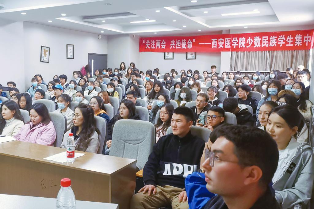 2023年3月23日12:00,在药学院三楼报告厅,民族学生“关注两会 共担使命”全国两会精神学习活动顺利召开,2022级民族学生、各学院民族专干、新疆内派教师160余人参加活动,活动由学工部安顺凤主持。