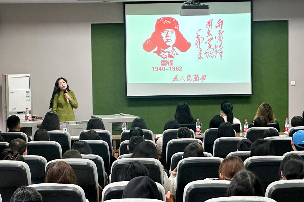 雷锋月里学雷锋,阳春三月树新风。活动开始,安顺凤老师首先从西医校园美丽风景说起,带领同学们共同温习了“五讲、四美、三热爱”具体内容,指出哪些行为是“丑陋”的,并向同学们发出“你是否已经认真思考,准备做怎样的人?是否规划好自己的大学生活?”的灵魂拷问。之后,她以雷锋纪念日切入主题,用精美的PPT,向同学们介绍了雷锋同志生平事迹,共同学习了“雷锋精神”真正含义,号召大家“传承践行雷锋精神,争做新时代好青年”。
