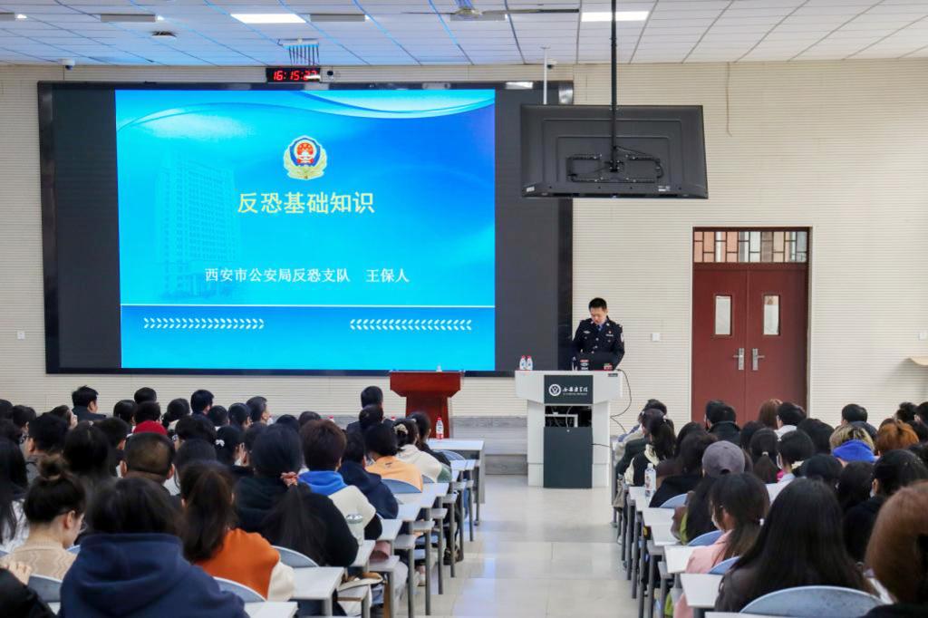 为增强广大师生反恐防暴及反电信诈骗安全防范意识和自我保护能力,2月28日下午,在未央校区一楼阶梯教室,市未央分局一行干警莅临我校,开展反恐、反电诈教育培训活动。2022级全体少数民族学生、部分学生代表、辅导员、内派教师参加了活动,学生处副处长昝倩出席并主持活动。
