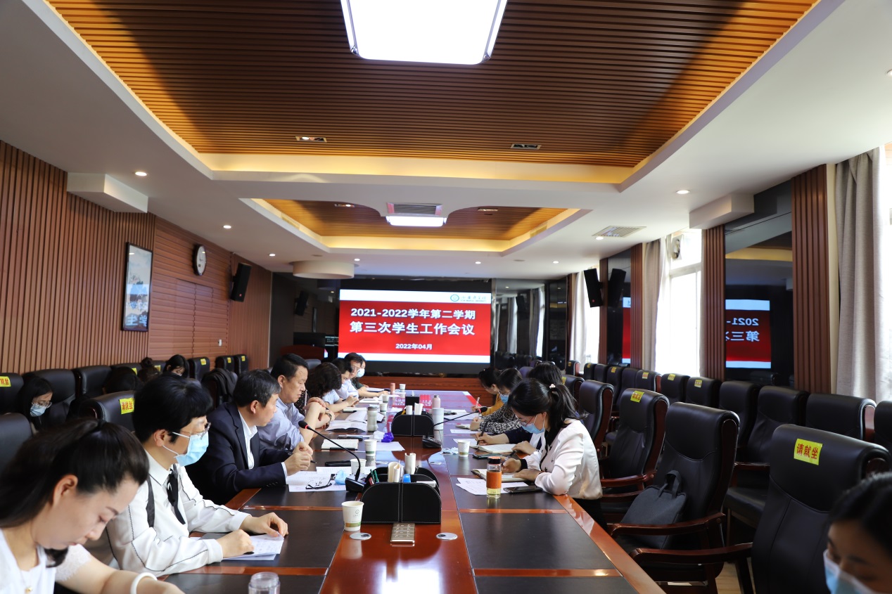 为做好疫情防控常态化下学生管理,部署好五一劳动节期间学生管理工作,4月27日下午,学工部在行政楼217会议室组织召开2021-2022学年第二学期第三次学生工作会议。校党委副书记熊冬梅出席会议并讲话。各学院党总支书记(副书记)、学生科长、学工部(学生处)、校团委处、科级干部参加了本次会议。会议由学工部部长、学生处处长靳红樱主持。