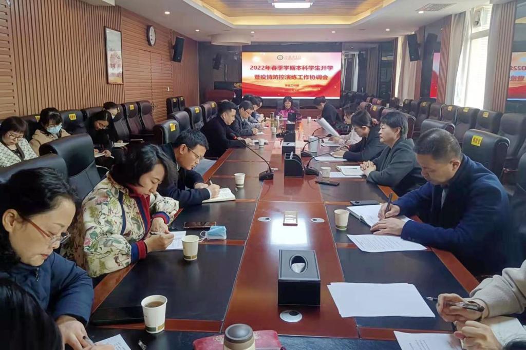 3月2日上午,我校2022年春季学期本科学生开学暨疫情防控演练工作协调会在行政楼217会议室召开。校党委副书记熊冬梅出席会议并讲话。各相关职能部门负责人、各学院党总支书记、副书记参加了会议。会议由学工部部长、学生处处长靳红樱主持。