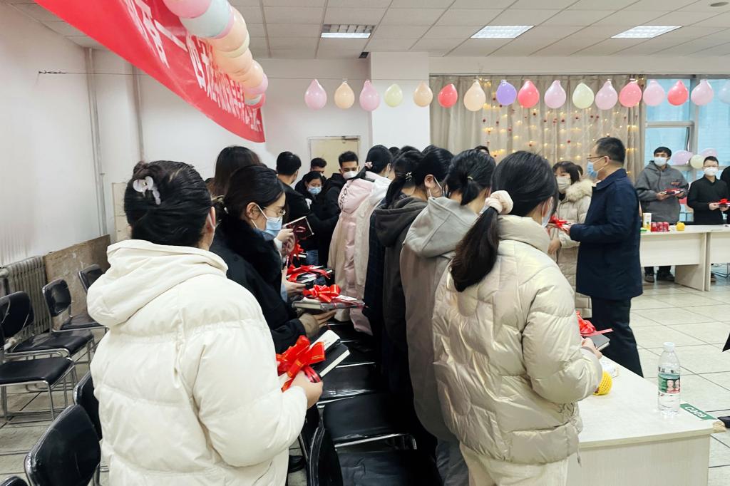 校党委书记刘岭为同学们发放新年礼物