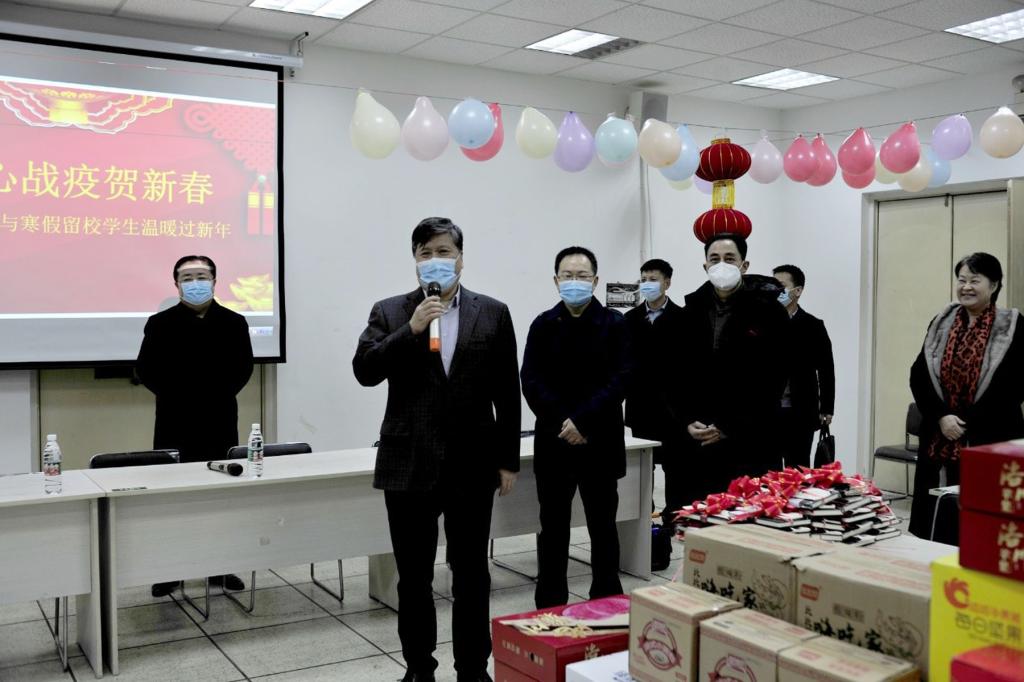 金牛辞旧岁,瑞虎迎新春。全体师生勠力同心、共克时艰,历时37天的疫情防控取得了决定性胜利,12000余名学生顺利离校返乡。由于实习、疫情等原因,我校还有50余名学生留校。为了让留校学生度过一个欢乐祥和的春节,感受浓浓的年味和学校的殷切关爱,1月30日上午,校党委书记刘岭、党委委员、副校长黄保强率队到含光校区看望慰问寒假留校学生,与学生温暖过新年。