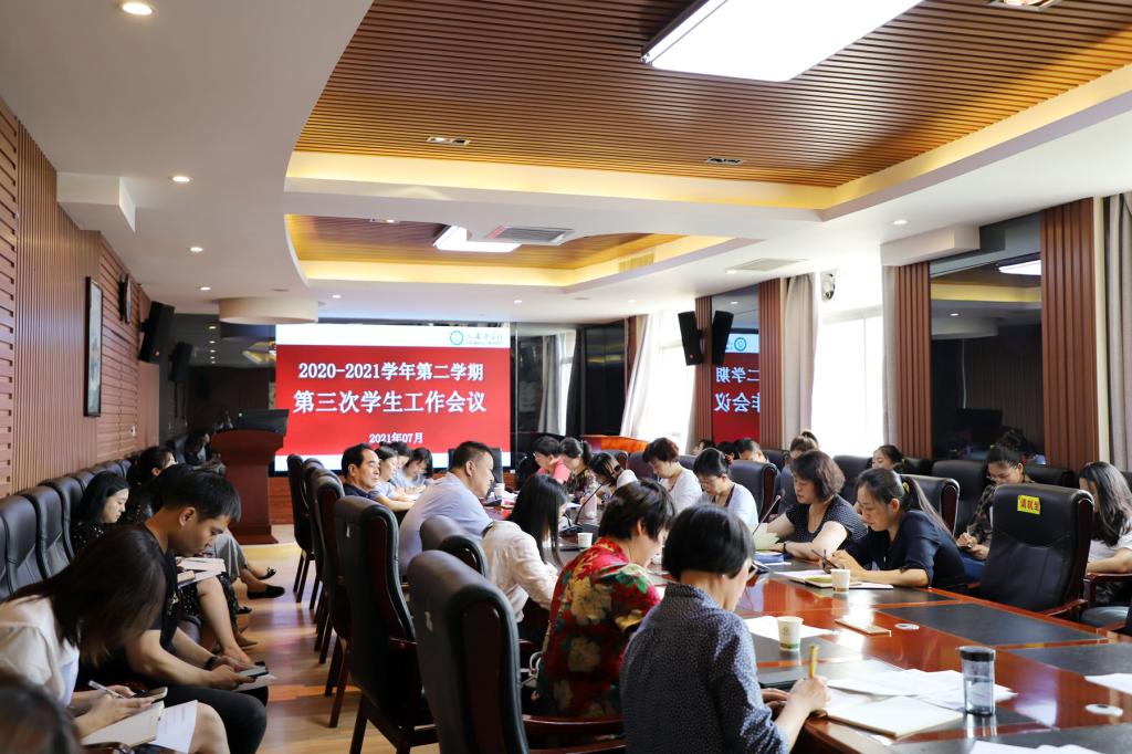 最后,校党委副书记熊冬梅总结讲话。她强调:一要思想重视、统筹安排,重点关注毕业生离校、实习生安排等工作,通过学习增强党性意识,落实为师生办实事。二要压实责任、健全制度,用好网络开展学生教育管理工作。三要做细做实、常抓不懈,做好实习学生安全工作,提前开展新生疫情防控教育工作。熊冬梅副书记号召学工同仁利用暑期充电学习,认真思考,大胆探索,不断创新,努力做好学生教育管理服务工作。(学生处 文/柏璐 图/陈娜 审核/靳红樱)