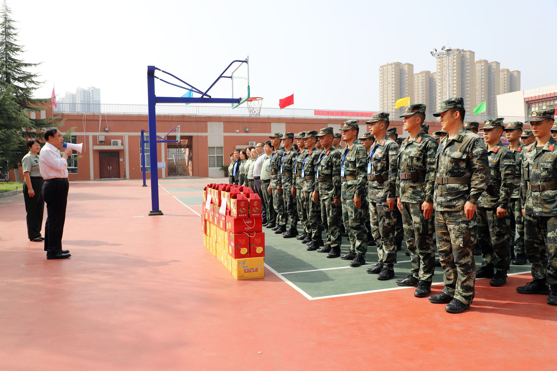 杨帆校长代表学校党政向承训教官送上清凉饮品和鲜美水果,对军训期间用餐饮食、医疗保障、安全防护等工作提出了进一步的要求,希望大家在接下来的军训过程中刻苦训练、严格要求,确保平安顺利完成军训工作。