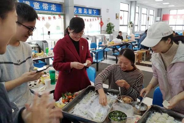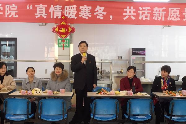 人喜盛世,鼠兆丰年。1月11日上午,学工部在教工餐厅组织开展了“真情暖寒冬,共话新愿景”寒假留校学生座谈会,校党委书记范兵、副书记熊冬梅出席会议,并与学生座谈,一起包饺子。相关学院党总支书记、副书记、学生科长和辅导员参加了座谈会。