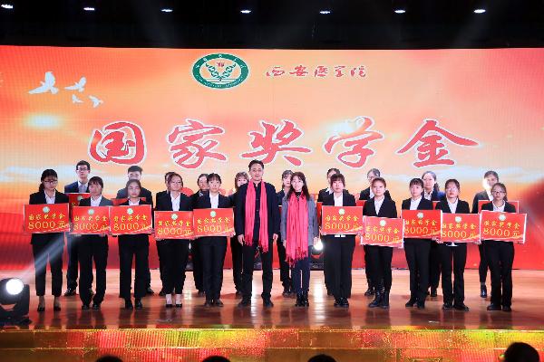 副院长黄保强、陕西省教育厅资助中心副处级调研员胡惠群为国家奖学金获奖得者代表颁奖