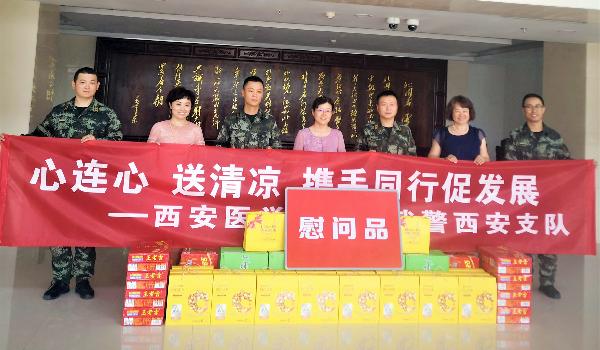 7月31日,八一建军节前夕,学校党委副书记熊冬梅一行,带着全校师生对人民子弟兵的深情厚谊和崇高敬意,来到武警西安支队,亲切慰问部队官兵,向他们致以节日的问候和祝福,并送去了慰问品。