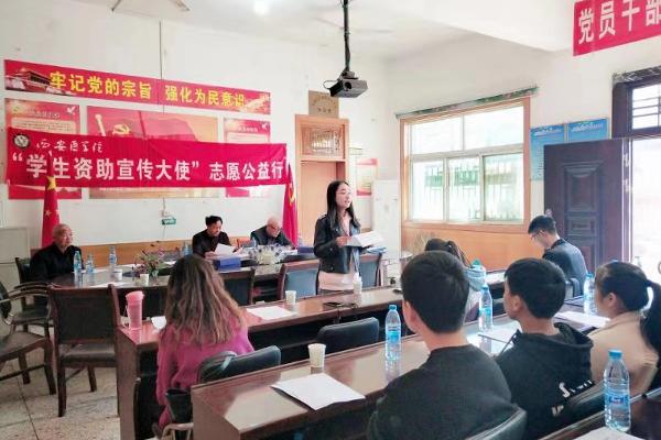 2018年首批聘任32名“学生资助宣传大使”,利用假期返乡宣传资助政策,取得良好成效。今年启动第二届“学生资助宣传大使”选拔,最终选聘62名获得国家奖、助学金的学生作为资助宣传大使,组建15支“资助政策宣讲团”,利用假期返乡进村入户宣传资助政策,开展公益服务活动,将政策与温暖一起送到了贫困学子的身边。后期,“资助宣传大使”资助政策宣传社会实践、志愿服务工作将形成常态化。