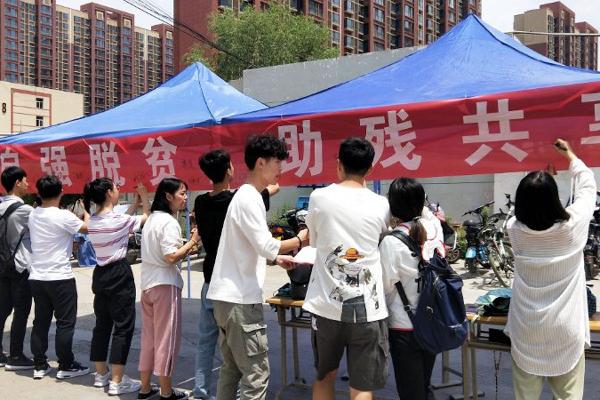 在国际助残日来临之际,积极开展以“自强脱贫,助残共享”为主题的宣传活动。活动中,同学们通过悬挂横幅、摆放展板、设置咨询台及发放宣传资料等形式,积极宣传残疾预防知识以及残疾保障法、就业条例,普及残疾人在生活保障方面的优惠政策等。近年来,学校出台多种优惠帮扶措施,帮助在校残疾学生顺利完成学业,并号召全校师生为关爱残疾人事业奉献爱心,收到良好的社会舆论效果。