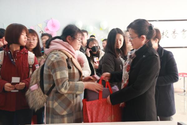 校党委副书记熊冬梅为学生发放“爱心大礼包”