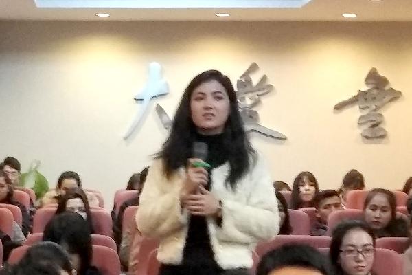 随后,新疆内派教师扎依尔·塔依尔江老师结合自身工作实际,从宗教思想与生活习俗的界定,大学生能否信教等方面与同学们进行了交流。最后,安顺凤老师做会议总结,她从党的民族政策、新疆的过去与现在、个人成长感悟、感恩教育等角度发表了观点。希望同学们要时刻保持清醒的头脑和高度的警觉性,要把反对民族分裂、维护祖国统一作为底线,在大是大非问题上守住底线,立场坚定,不断提高思想认识,珍惜大学的学习机会,学好真实本领,多参加学校各类社团活动,与宿舍、班级同学和睦相处、自觉维护民族团结,管好自己,从每一件小事做起,积极弘扬社会主义核心价值观,宣传正能量。(学工部 文/安顺凤 图/夏家明)