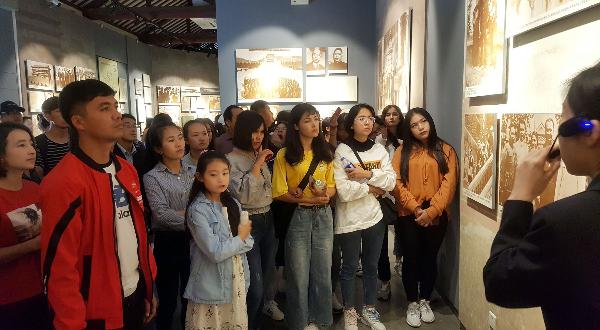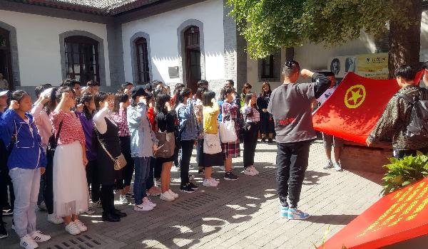 步入八路军办事处纪念馆,同学们被其古朴厚重的历史气息所折服。在一张张赋有时代历史意义的黑白照片前、在一幅幅战争场景展板前、在一件件实物信件前、在一个个雕像前,同学们驻足凝望、认真聆听那峥嵘岁月的历史故事,深情回顾革命年代的苦难艰辛,深切缅怀无数革命烈士以及像白求恩、海伦.福斯特这样的国外援华友人,为了中国人民的解放事业,无私奉献自己的一切那些可歌可泣的英雄事迹。热血激荡在内心,使命再一次觉醒,面对着鲜红的中国共青团团旗,全体同学庄重的举起右拳,重温入团誓词,并郑重的宣誓:为共产主义事业而奋斗!