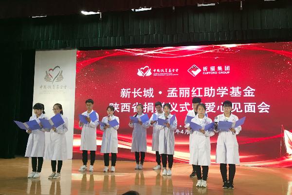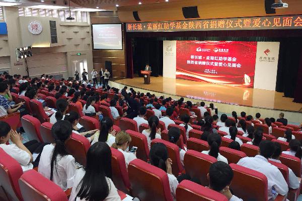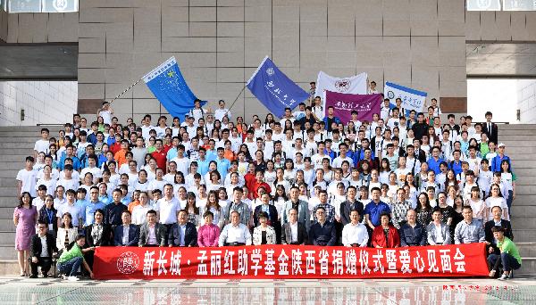 4月27日下午,由中国扶贫基金会举办的“新长城•孟丽红助学基金”陕西省捐赠仪式暨爱心见面会在陕西师范大学隆重举行。我校30名2017级学生获得资助。第十三届全国政协委员、祈福集团副董事长孟丽红,中国扶贫基金会理事长郑文凯,陕西省统战部副部长白慧芳,陕西省教育厅总会计师刘宝平,陕西省扶贫开发办公室副主任彭安季,陕西师范大学、西北大学等7所接受捐赠的高校相关负责人出席了捐赠仪式。我校学生处大学生资助中心组织30名受资助学生参加了仪式及见面会。