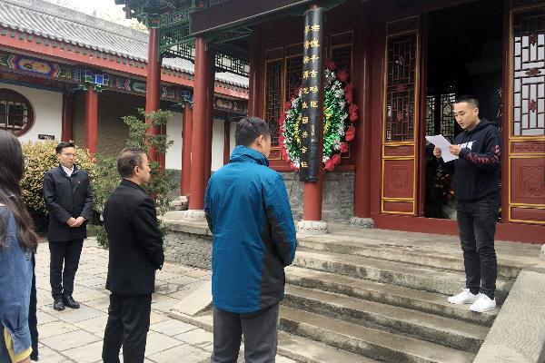 青山埋忠骨,翠柏佑英烈,在西安韦曲城郊长眠着一位民族英雄及家眷八人,他们用牺牲铸就了中华民族之魂,为民族的崛起孕育了绵延火种。清明细雨淅淅沥沥,2018年4月5日上午,学工部组织少数民族师生前往杨虎城将军陵园扫墓并进行爱国主义教育。学生处刘宁、新疆内派服务教师白晓昱、阿布力米提·吐尔逊、玛合丽帕·哈哈孜别克、孟繁繁等45名师生参加了此次祭扫活动,活动由刘宁主持。