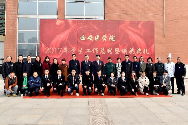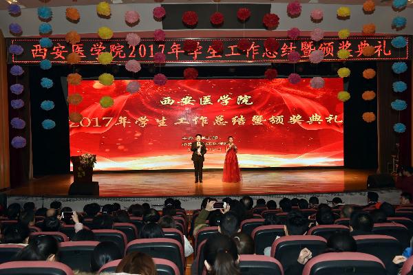 12月28日下午,我校2017年学生工作总结暨颁奖典礼在学术报告厅隆重举行。校党委书记范兵,党委副书记、院长杨帆,副院长弥曼,副院长黄保强,党委副书记熊冬梅,副院长李雪萍,副院长张越林,纪委书记吴毅及有关部门负责人和全体学工干部出席了本次颁奖典礼。同时,为学生成长成才辛勤付出的省级师德标兵、省级教学名师、学生工作一线的学工骨干、十年如一日在基层默默奉献的服务明星作为颁奖嘉宾也出席了颁奖典礼。本次活动由学工部主办,临床医学院承办,全校450余名学生代表参加了典礼。