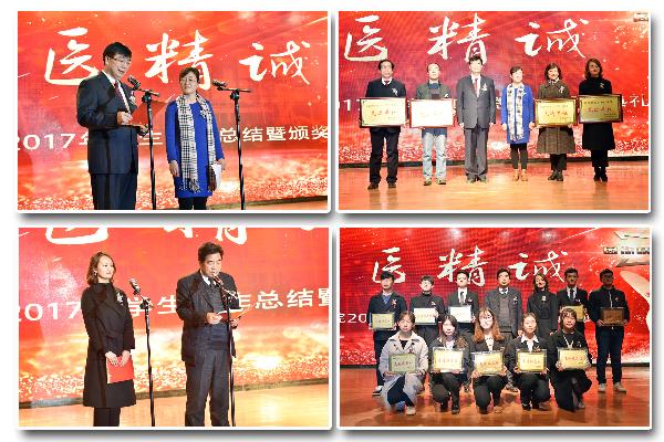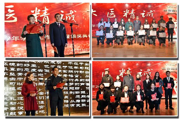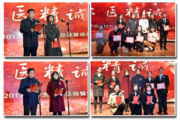 “大医精诚”2017年学生工作总结暨颁奖典礼分为优秀个人表彰和优秀集体表彰两个板块,对在2017年团结奋进、刻苦学习、勇于创新、勤勉励志、服务社会方面做出较大成绩的个人和集体进行了表彰。颁奖活动通过榜样事迹视频展示、宣读颁奖词、获奖代表走红地毯和获奖学生发表感言等形式,融入榜样教育和激励教育,让榜样的力量在校园熠熠闪光。同时,为学校发展把舵指引方向的校级领导、省级教学名师、基层服务标兵、院系党政管理人员、学工干部等为获奖同学颁奖、致辞,这是我校“全员育人、全程育人、全方位育人”要求的集中体现,是落实立德树人根本任务的新举措,同时开创了我校学生教育的新内容、新形式、新局面。