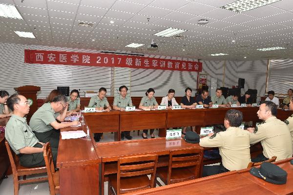 会议首先由学工部副部长、团委书记王燕宣读《关于成立2017级新生军训工作领导小组的通知》和《关于成立2017级新生军训团的通知》。接下来,西安医学院军训团副团长、中国人民解放军火箭军工程大学上尉刘国帅就军训期间的注意事项作了说明,并强调了军训期间的安全和纪律要求。其次,西安医学院军训团团长、中国人民解放军火箭军工程大学雷霁上校强调了军训的意义,并指出教官与辅导员要加强联系与沟通,尽快了解学生思想、身体素质和对训练强度的反应等,以保证顺利完成本次军训任务。