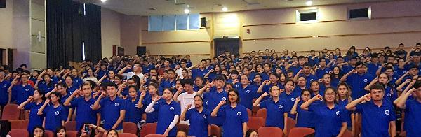 (学工部)为深入贯彻落实全国高校思想政治工作会议精神,紧紧围绕社会稳定和长治久安总目标,按照新疆维吾尔自治区党委相关决策部署,有效加强我校新疆籍少数民族学生思想意识教育的针对性,6日28日下午,在学术报告厅,我校隆重举行反分裂、促团结、 坚决与“三股势力”作斗争新疆籍师生集体发声亮剑誓师大会。近500名学生工作者及少数民族学生着装整齐、庄严肃立、高唱国歌、紧握右拳、用铿锵有力、振奋人心的誓言,发出全体新疆籍师生“紧紧围绕总目标,坚定信念跟党走”的最强音。