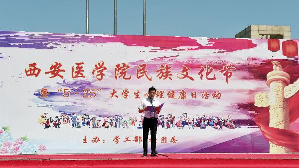 (学工部)为继承和发扬中华优秀传统文化,弘扬民族精神,加强民族团结教育、促进和谐校园文化氛围。5月25日下午,在致远广场,我校隆重举行首届“民族文化节”暨“5.25大学生心理健康日”活动。校党委书记范兵、党委副书记熊冬梅、陕西省高教工委学工部副部长库来西.依布拉音、西安石油大学心理中心主任郑林科、陕西科技大学学工部部长杨健、西安工业大学学工部部长李建安及校组织部、统战部、宣传部、学工部、团委等相关部门负责人和各院系党总支书记、学生科长、团总支书记、学生代表近400人参加了活动,活动由学工部部长助理安顺凤主持。