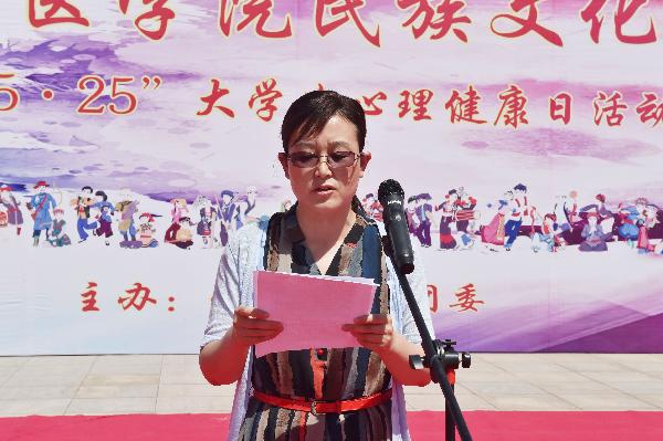 党委副书记熊冬梅同志在致辞中指出:文化是一个民族的根和灵魂。举办此次民族文化节就是想搭建一个交往、交流、交融的平台,让各族同学之间加深了解、增进友谊、共创和谐西医良好氛围。她希望同学们能肩负起历史赋予的重任,努力挑战自我,积极参与到学校各类文化活动中、勤奋刻苦学习、锻炼强健体魄,培养阳光健康心理,人人争做传播民族文化、增进民族团结、共促和谐西医的楷模。