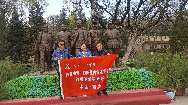 (学生处)为弘扬延安精神,传承红色基因,进一步提高我省新疆内派服务管理教师学生工作水平,造就一支政治坚定、作风优良、勇于担当的内派教师队伍,4月9日-14日,“陕西省第一期新疆内派服务管理教师高级研修班”在延安如期举行。陕西省高教工委党委副书记李智军、省委统战部民族宗教工作处处长张民兴、学工部部长田民正等同志出席了研讨会,我校安顺凤、白晓昱、阿布力米提·吐尔逊三名新疆内派服务管理教师参加了培训。