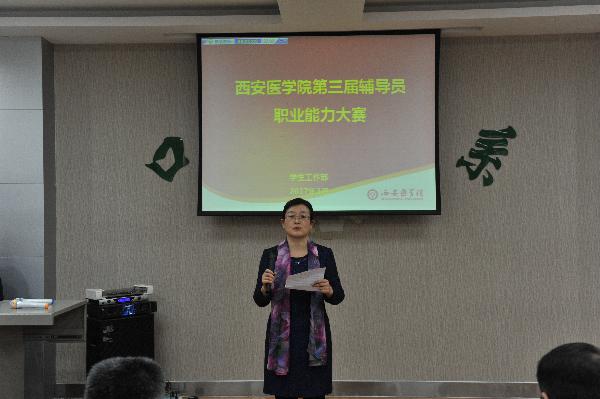 (学工部)2017年3月16日上午,我校第三届辅导员职业能力大赛决赛暨颁奖仪式在口腔医学系学术报告厅落下帷幕。校党委副书记熊冬梅出席大赛并作重要讲话。中共陕西省委高教工委学工部部长田民正及部分高校学工部部长出席大赛并担任评委。学工部全体工作人员、各院(系)党总支书记、学生科长、团总支书记及全体辅导员现场观摩了比赛。