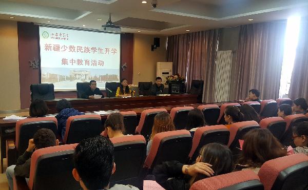 (学工部)开学伊始,为进一步加强新疆籍少数民族学生教育管理工作,3月3日下午,在护理学院报告厅,学工部举办“新疆籍少数民族学生开学集中教育活动”。内派服务管理教师及在校91名新疆籍少数民族学生参加了活动,活动由学工部部长助理安顺凤主持。 由于我校新疆籍少数民族学生较多,维吾尔族学生比例较大,今年,陕西省内派教师工作协调站根据我校实际现况,为我校新增派一名维吾尔族教师。安老师首先向同学们介绍了阿布力米提·吐尔逊老师的基本情况。之后,阿布力米提·吐尔逊老师发表了热情洋溢的讲话。他表示:一定会尽自己所长,积极努力工作,为新疆少数民族学生教育管理服务工作尽一份力量。