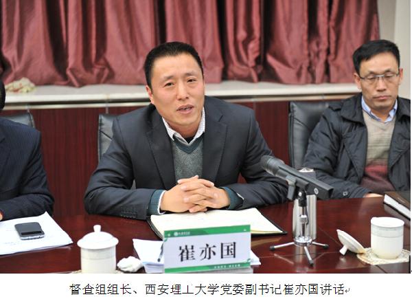 12月5日下午,省委高教工委辅导员队伍建设和学生心理健康教育督查组第一小组专家西安理工大学党委副书记崔亦国,省委高教工委学工部部长田民正,西安石油大学学工部部长雷西合,西安工程大学学工部部长黄海峙,长安大学心理健康教育中心主任贠丽萍一行五人来我校检查指导工作。我校党委书记范兵、学工部、教务处、组织部、人事处、招就处、公共卫生系主要负责人以及各院系党总支书记出席了会议。会议由省委高教工委学工部田民正部长主持。