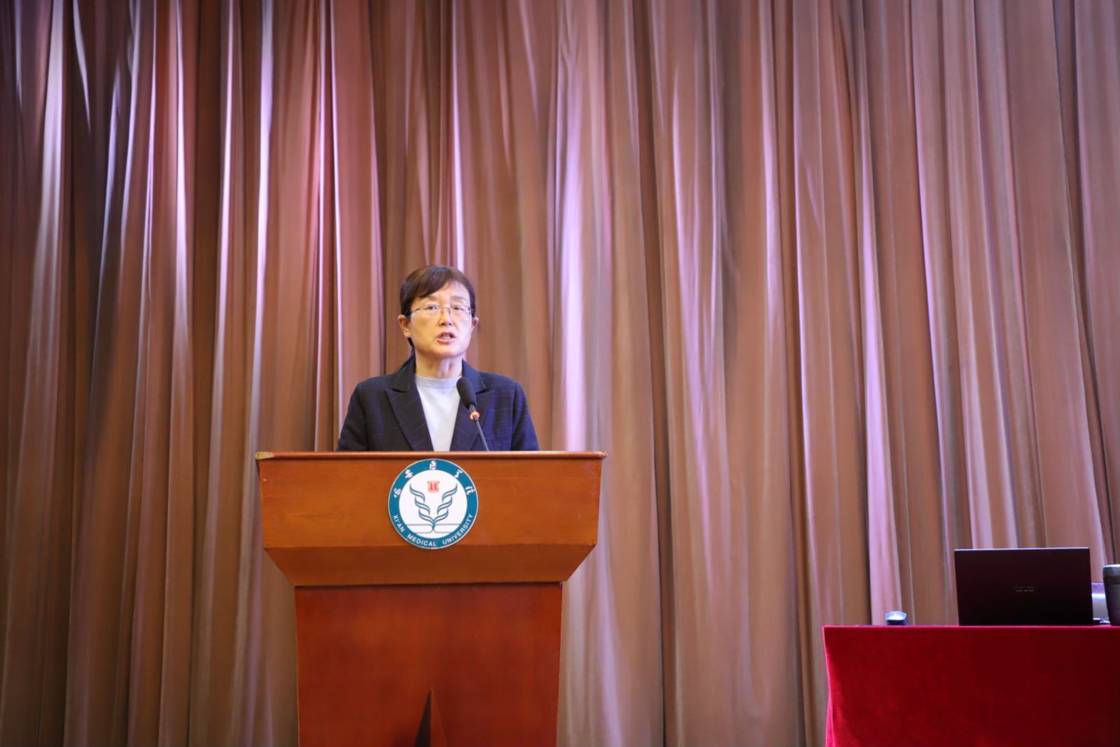 报告会伊始,熊冬梅对“杏林大讲堂”开设的背景、主要内容及意义作了简要说明。她要求学工部要用心办好“杏林大讲堂”,坚持问题导向。要用好调研方法,聚焦同学们关心、关注的话题及成长的难点堵点,精心打造优质内容、丰富活动形式,把大讲堂办成让师生喜爱,学生受益的思政教育平台和校园文化品牌,让讲堂的作用发挥到最大化。要积极推动学生综合素质评价改革,不断完善学生成长素质评价体系,把大讲堂融入第二课堂,开拓学生素质发展新路径、新方法,认真贯彻落实学校“12345”计划,助力高素质应用型医学人才培养。她希望同学们珍惜大学时光,用好大学资源,注重个人德智体美劳全面发展。