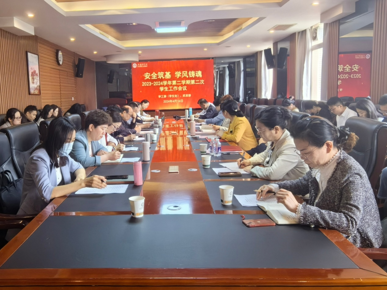 4月16日上午,我校在行政楼召开“安全筑基学风铸魂”本学期第二次学生工作会议。校党委副书记熊冬梅出席会议并讲话。学工部(学生处)部(处)长、武装部部长昝倩主持。
