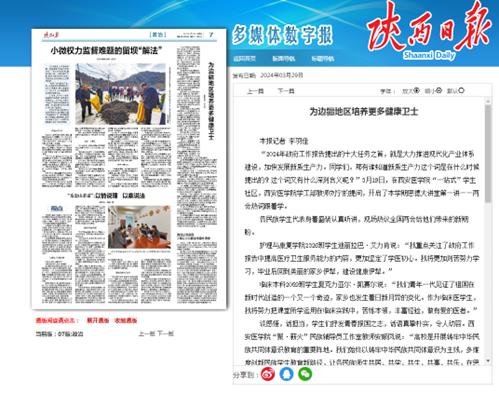 3月29日《陕西日报》刊登我校民族学生教育工作。
