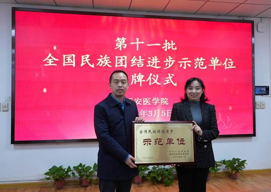熊冬梅代表学校感谢省民宗委、省委教育工委及省教育厅长期以来对学校民族工作的关注和指导,并简要汇报了学校民族团结进步创建工作等方面的情况。她表示,西安医学院将以此次授牌为契机,始终坚持以习近平新时代中国特色社会主义思想为指导,深入贯彻落实习近平总书记关于加强和改进民族工作的重要思想,将铸牢中华民族共同体意识融入立德树人全过程,高质量推动学校民族团结进步创建工作。