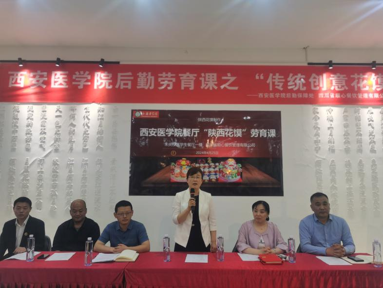 种新锋介绍了今年“劳动月”的主题、主要活动内容及本次活动的基本情况。他表示,非遗文化进校园之陕西花馍制作体验是劳动实践课的创新,是学校首次尝试。让学生在传承非遗的实践中感受劳动之美,在实践中提高综合素养,推动学生德智体美劳全面发展。后勤保障处副处长王凯表示,此次活动是推动学生劳动实践教育的积极实验,本次“劳动月”后勤保障处还积极配合学工部开发了“小裁缝”公益服务、耕读园种植活动、食堂帮厨等劳动实践项目,接下来将全力配合并参与到学生劳动实践中,助力学生成长成才。