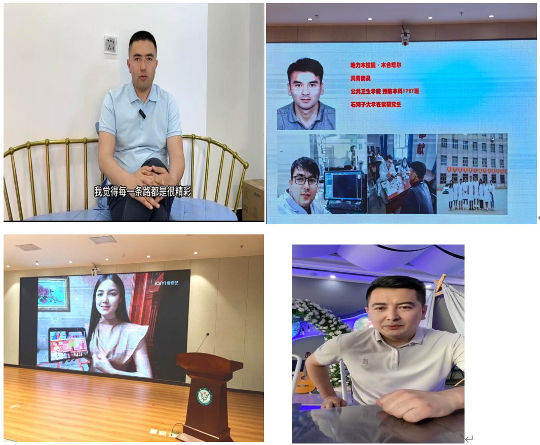 四位优秀校友代表,医学技术学院影本1314班艾尼瓦尔·米吉提、医学技术学院检本1423班阿力木江·买提库尔班、公共卫生学院预防1727班地力木拉提·木合塔尔、临本1845班穆妮热·穆合塔尔同学分别用小视频的方式,向同学们分享了自己在校期间的学习和生活经历,并结合现在的工作感悟,寄语学弟学妹们,要珍惜大学美好时光,努力刻苦学习,全面提升自我,做一个对国家对社会有用的人。