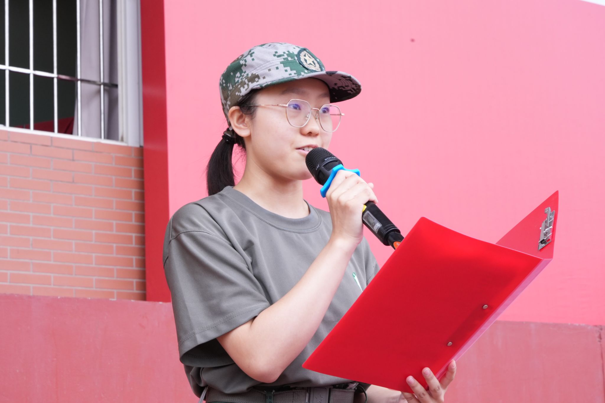 药学院药本2468班沈奕佳代表全体参训学员发言,她回顾了14天精彩的军训生活和取得的收获,表示将秉承军人优良作风、坚毅品质,牢记“厚德博学、精益求精”的校训和“健康所系,性命相托”的医学生誓言,珍惜韶华、脚踏实地、锤炼本领,为健康中国建设贡献青春力量。