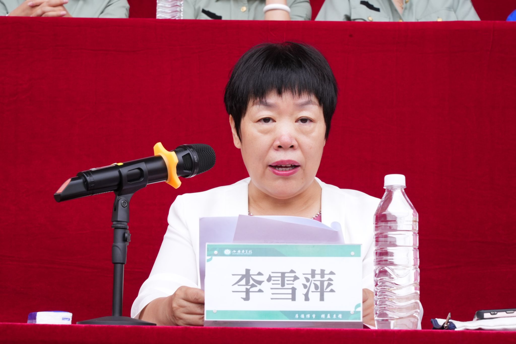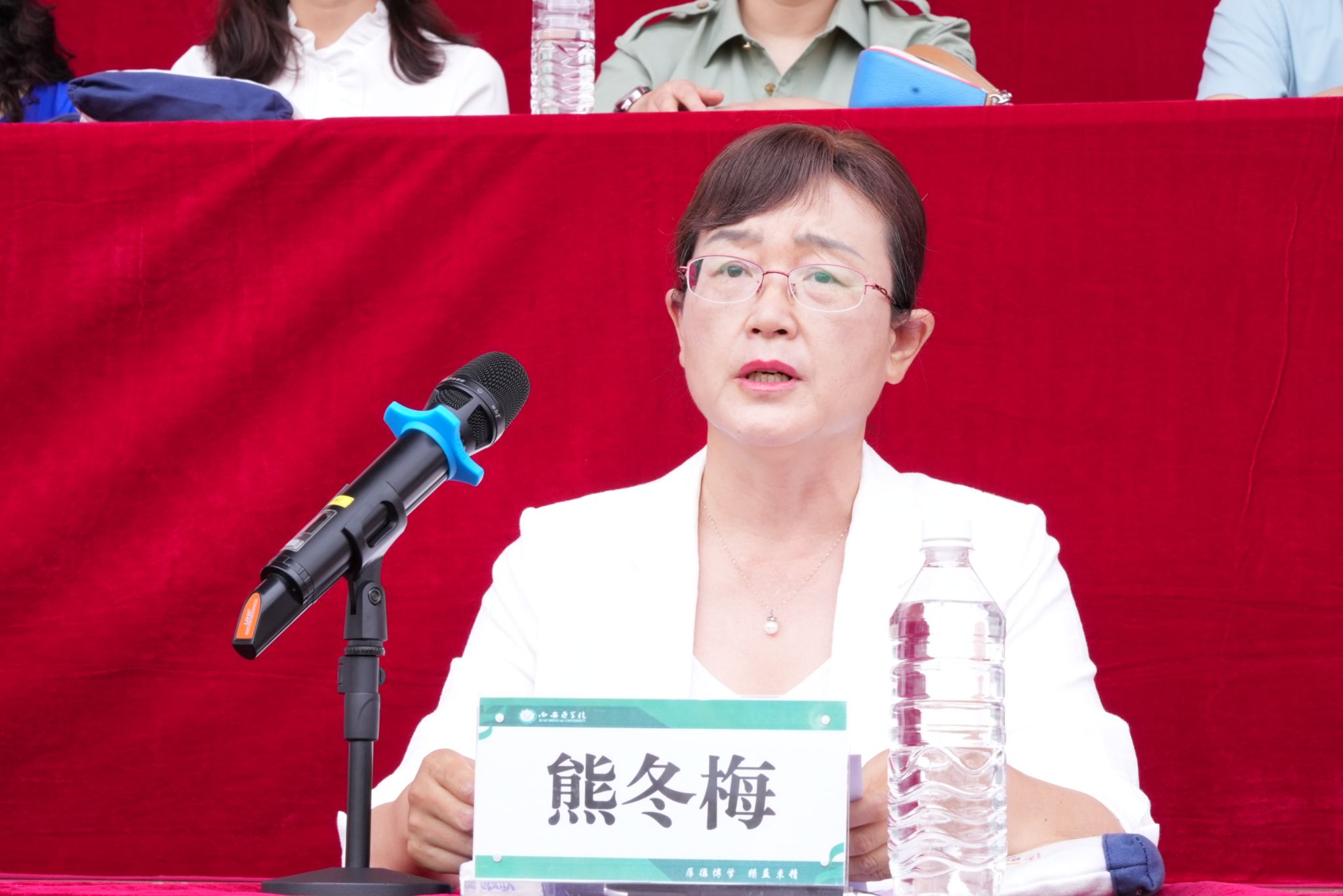 熊冬梅向在军训中表现优异、受到表彰的单位和个人表示热烈祝贺,向为本次军训工作付出辛勤劳动的教官、老师表示衷心感谢,向圆满完成此次军训任务的全体新生们致以亲切问候。她指出,今年的军训工作呈现出“三个新”,参训对象焕然一新,军训内容耳目一新,军训组织推陈出新,短短两周,同学们始终保持饱满精神和昂扬斗志,不惧暑热、不畏风雨,在训练中锻炼身体素质、磨砺意志品质,充分展现了新时代青年的朝气与风采。为帮助新生开启全新的大学生活,她希望同学们一是要学会学习。要快速转换角色,尽快适应大学生生活,适应大学学习的全新变化。学会主动学习,认识自我、培养兴趣、坚持不懈。学会质疑,不唯书、不唯上、不从众。二是要学会交往。要在共赢中发展,学会跳出自己的小天地,学会合作。学会融入集体,要在集体中结成志同道合的朋友。要善于沟通,善于和辅导员沟通、家长沟通、老师沟通、同学沟通。三是要学会担当。努力成长为创新者,提高创新能力,构建解决复杂问题的能力体系。要成为实践者,既要读有字之书,更要读无字之书。要成为实干者,带着理论知识寻找实践坐标。四是要学会自律。要养成健康生活方式,强健身心体魄,保持乐观心态和健康体格。