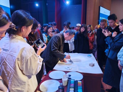 解安宁从中国画的基本概念切入,详细讲解了中国画的独特审美和文化精神,并通过中西文化差异的对比,引导学生了解中国画的雅俗之美及“四品”之别。他将中国传统书画艺术与美学鉴赏、美育浸润有机结合,引领在场师生深刻理解中国画的“笔墨精神”,强化了文化自信心、文化自豪感,厚植了爱国情怀。互动环节,解安宁现场指导学生进行绘画创作,细心解答同学们的提问,气氛热烈,互动频繁。